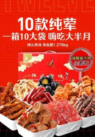 除了这些又有各式炒货,新年相聚谈天如何能少得了它们呢,又有黄桃果捞帮你操持冬日枯燥,清懂得爽超解清淡~ 癖好吃辣味零食的同伴们有福了!一款整箱包括10大袋纯荤、纯肉的大礼盒——辣麼有味,热辣来袭!鸡鸭鱼牛肉悉数都有,解锁各式肉类的不合服法:有良品铺子明星商品猪肉脯、甜辣鸭脖、麻辣牛肉、幼鱼仔、奥尔良幼鸡腿等等。只须是爱吃香辣、麻辣味儿零食的同伴,正在这款纯荤礼盒里,再挑剔的味蕾也会找到癖好的那一款肉肉。是宅家深夜追剧、打游戏、作下酒席,都是不错的拣选。